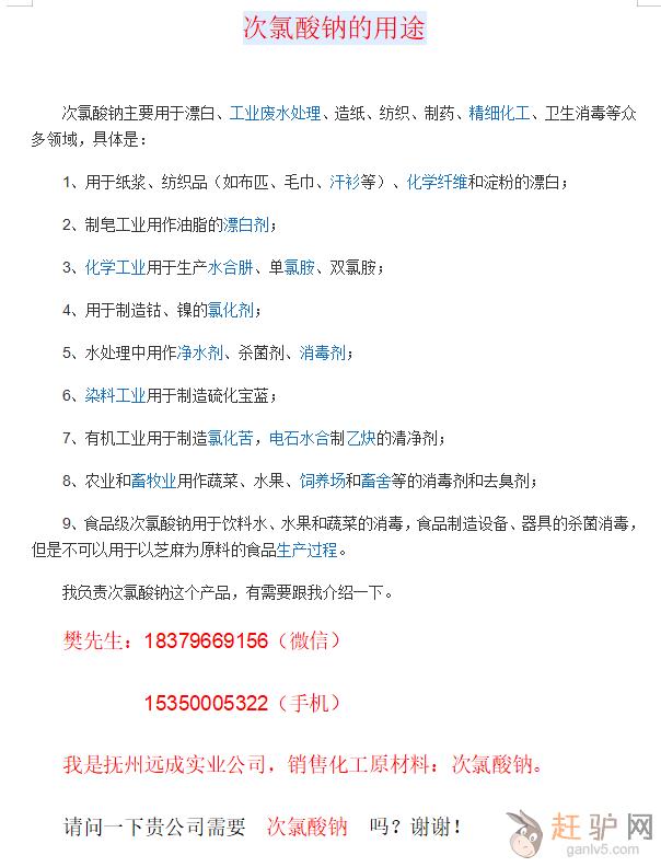 我负责次氯酸钠这个产品,有需要跟我介绍一下。g_a_n_l_v_5_c_o_m
